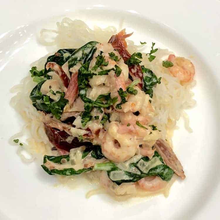 Slutligen lägg till räkorna och salt och peppar.